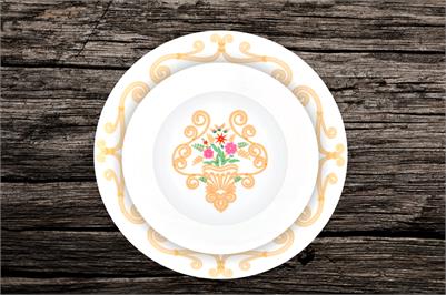 Sandıkların güzide parçalarını oluşturan işlemeler,zarafet ve metalik altın rengi ile bütünleşiyor. Kenar kırılmaz özellikte olup,bulaşık makinesinde yıkanabilir.