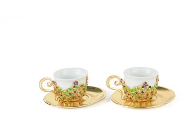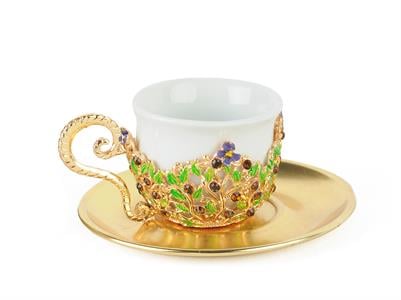 Taşlarla işlenmiş Gold kahve fincanımız, sunumlarınıza farklılık katacak.