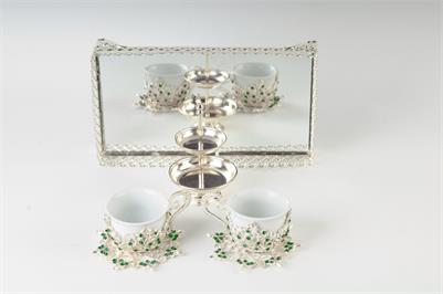 İki adet gümüş kahve fincanı, gümüş lokumluk ve 14*26,5 cm gümüş tepsisi ile birlikte gönderilecektir.